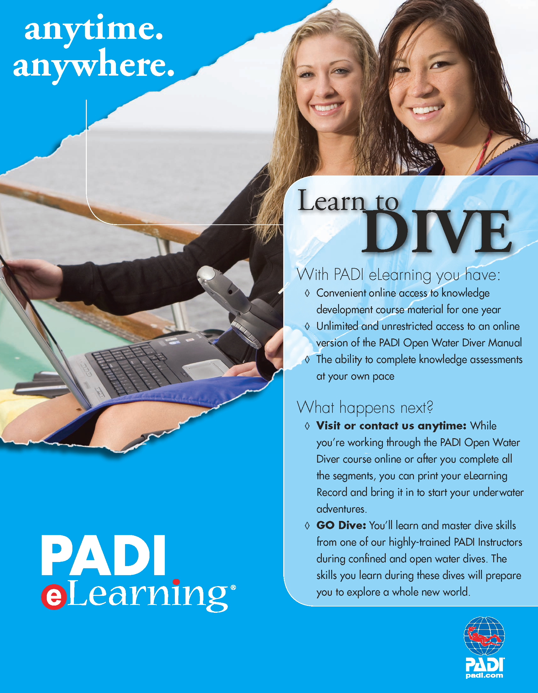 the academic portion of the PADI Open Water Diver course online with PADI eLearning.